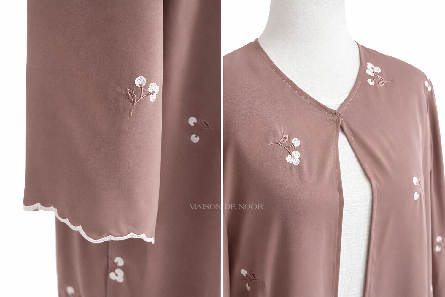 Floral Embroidered Open Abaya - Tea Pink