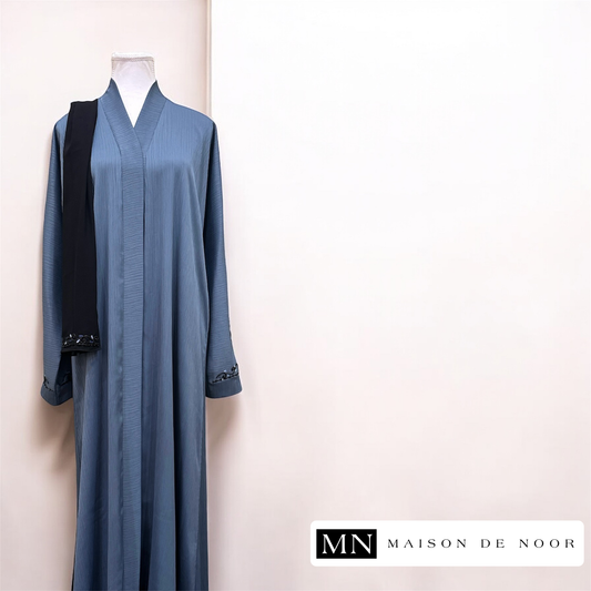 MN Occasions | IRIS - Handmade Beaded Embroidered Abaya - Sky Blue