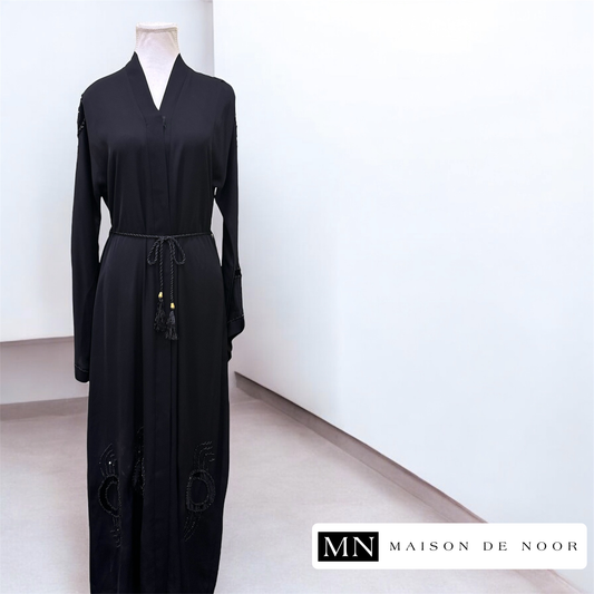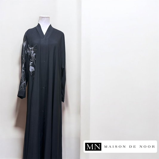 MN Occasions | Handmade Beaded Embroidered Abaya - Midnight Black