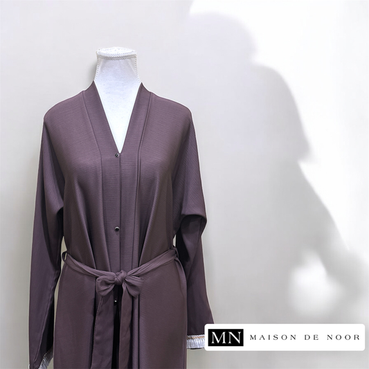 MN Essentials | Striped Open Abaya - Chocolate - FINAL SALE