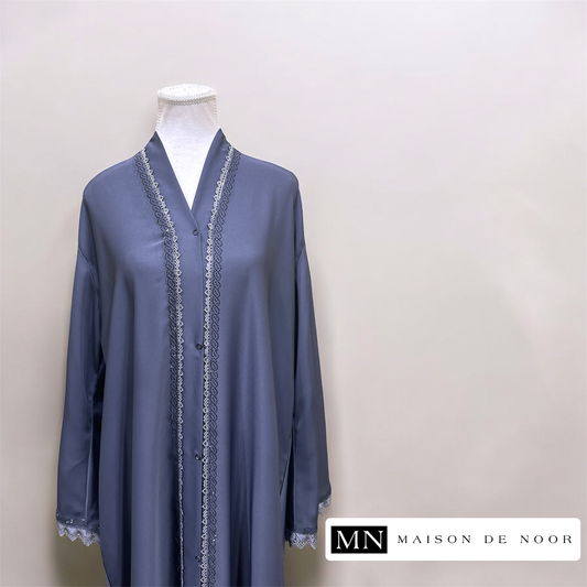 MN Occasions | Sequin Lace Button-down Open Abaya - Indigo Blue
