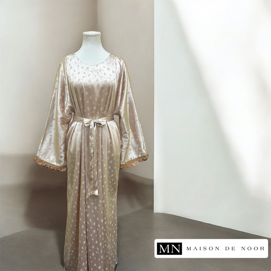 MN Occasions | Luxe Satin Belted Abaya - Rose Gold - LIMITED EDITION