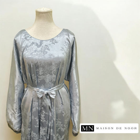 MN Occasions | Luxe Satin Belted Abaya - Ice Blue - LIMITED EDITION