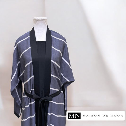 MN Essentials | Striped Open Abaya - Rain - FINAL SALE